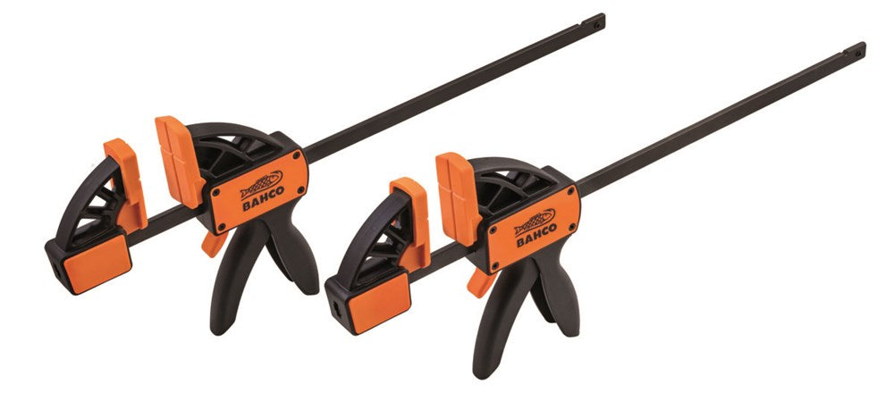 Bahco QC-300A-2P snelklemmenset, set van 2 klemmen met een bekopening van 300 mm en klemkracht tot 80 kg, voorzien van Quick-release systeem en omkeerbaar bekmechanisme.