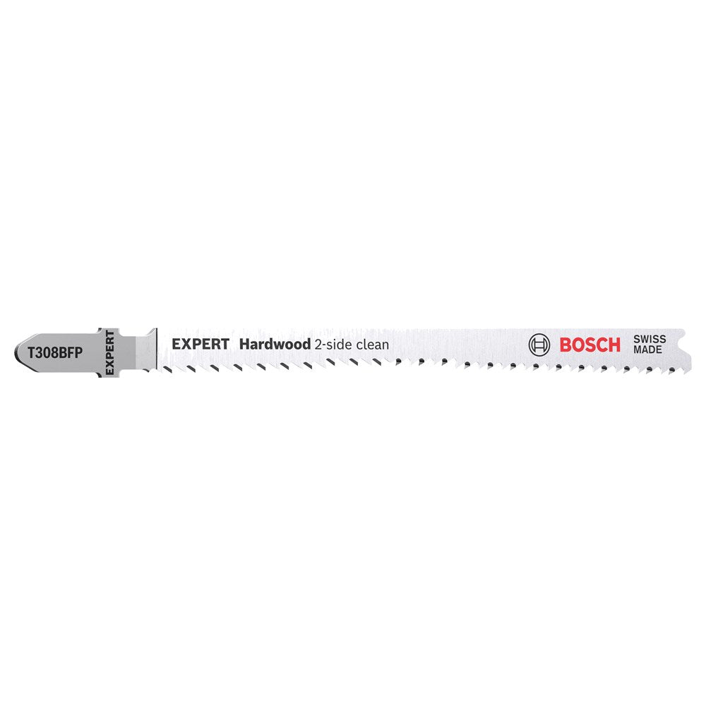 Ervoor zorgen dat de 'schone kant' van een decoupeerzaag op het zichtbare deel van het werkmateriaal zit, is altijd een kunst geweest voor schrijnwerkers en houtbewerkers. Soms kun je het werkstuk omdraaien en soms kan de decoupeerzaag zelf ondersteboven worden gehouden. Of je kunt de EXPERT 'Hardwood 2-side clean' gebruiken, die aan beide kanten perfect splintervrij zaagt dankzij de in tegengestelde hoeken gerangschikte tanden. Het Bosch EXPERT 'Hardwood 2-side clean' decoupeerzaagblad is gemaakt van bi-metaal, een strook sneldraaistaal die met een flexibel stalen zaagblad is verbonden om kracht en flexibiliteit te combineren, en is sterk genoeg om keukenbladen van gelamineerde spaanplaat of hardhout te zagen. Beschikbaar voor splintervrije rechte zaagsneden (T308BF) en voor bijzonder nauwkeurige splintervrije hoekzaagsneden (T308BFP)