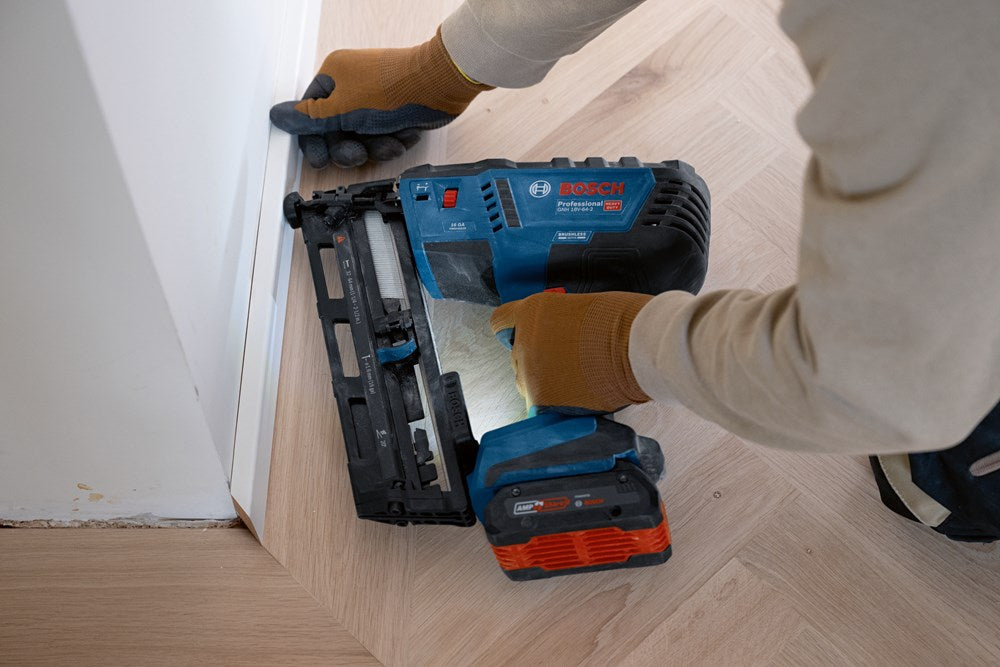 Set bevat: 18V accu houttacker met borstelloze motor, geschikt voor 16Ga spijkers van 32–64mm, geleverd in L-BOXX 238. Ideaal voor professioneel afwerken van houten elementen zonder compressor of gas.