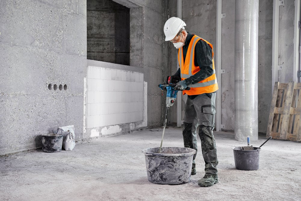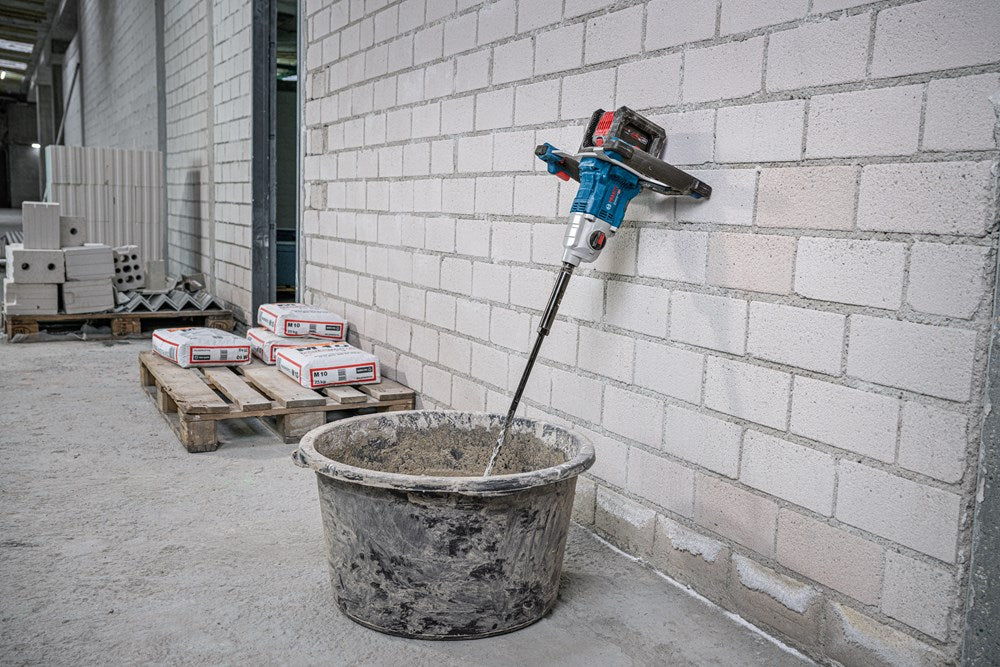 Set bevat: Krachtige 18V accu-mengmachine met borstelloze motor en twee snelheidsstanden, inclusief softstart-functie en KickBack Control voor veilig en spettervrij mengen; ideaal voor metselwerk, renovaties en landschapsarchitectuu...