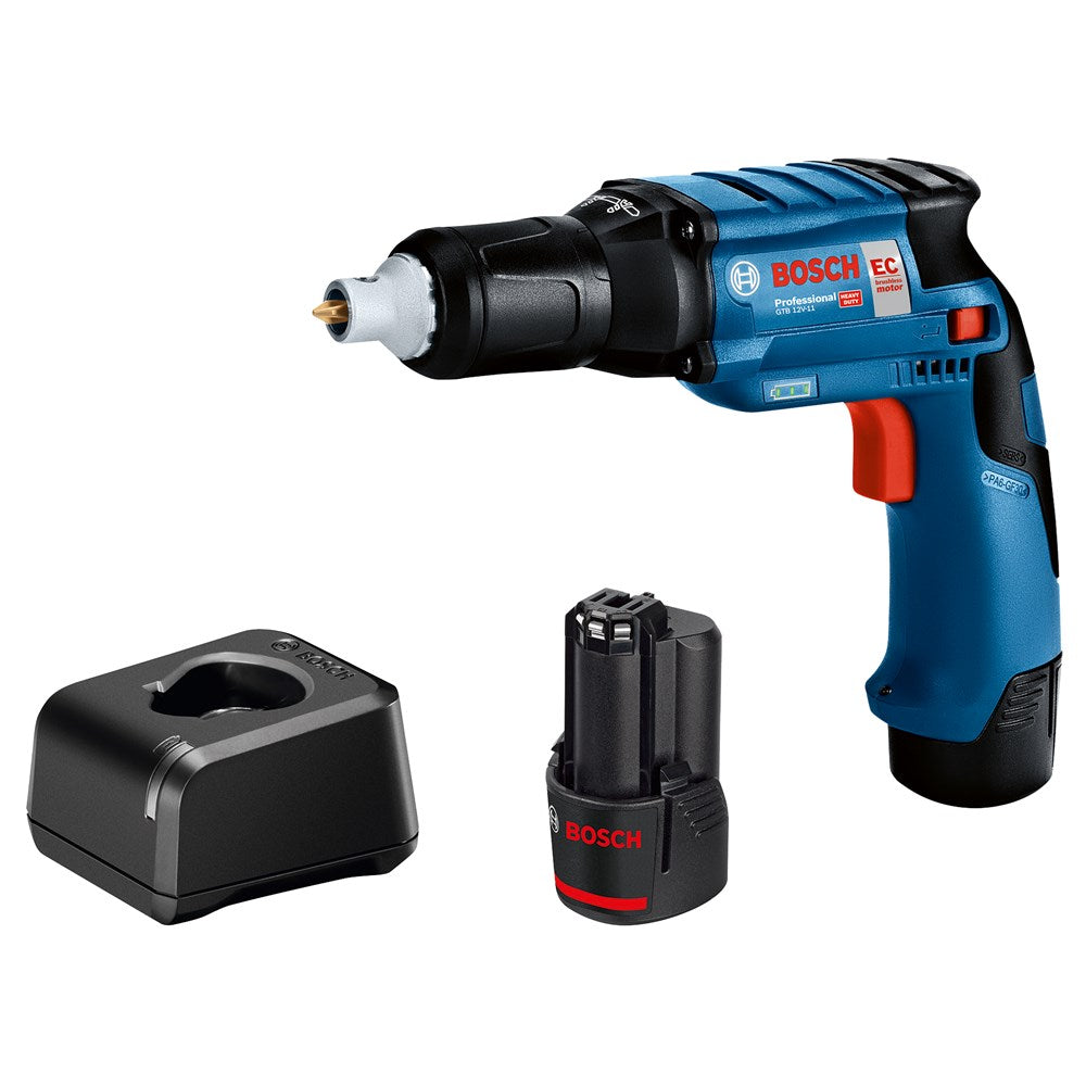 De GTB 12V-11 Professional is een compacte accudroogbouwschroevendraaier voor incidentele droogbouwtoepassingen in de 12V-klasse. Hij beschikt over een compact en licht ontwerp van 0,9 kg met 2,5 Ah en een ergonomische greepomtrek voor comfortabel hanteren, zelfs op krappe werkplekken. Hij heeft ook een krachtige en compacte aandrijflijn van 12 V waarmee tot wel 1200 schroeven per (2,5 Ah) acculading kunnen worden bevestigd. Voor een lange levensduur van de machine beschikt de droogbouwschroevendraaier over de borstelloze motortechnologie van Bosch met Electronic Motor Protection en een motorrem.