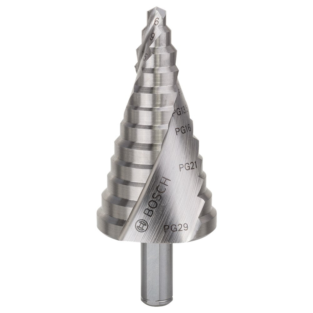 • HSS trappenboor kan met één boor gladde boringen van diverse diameters maken