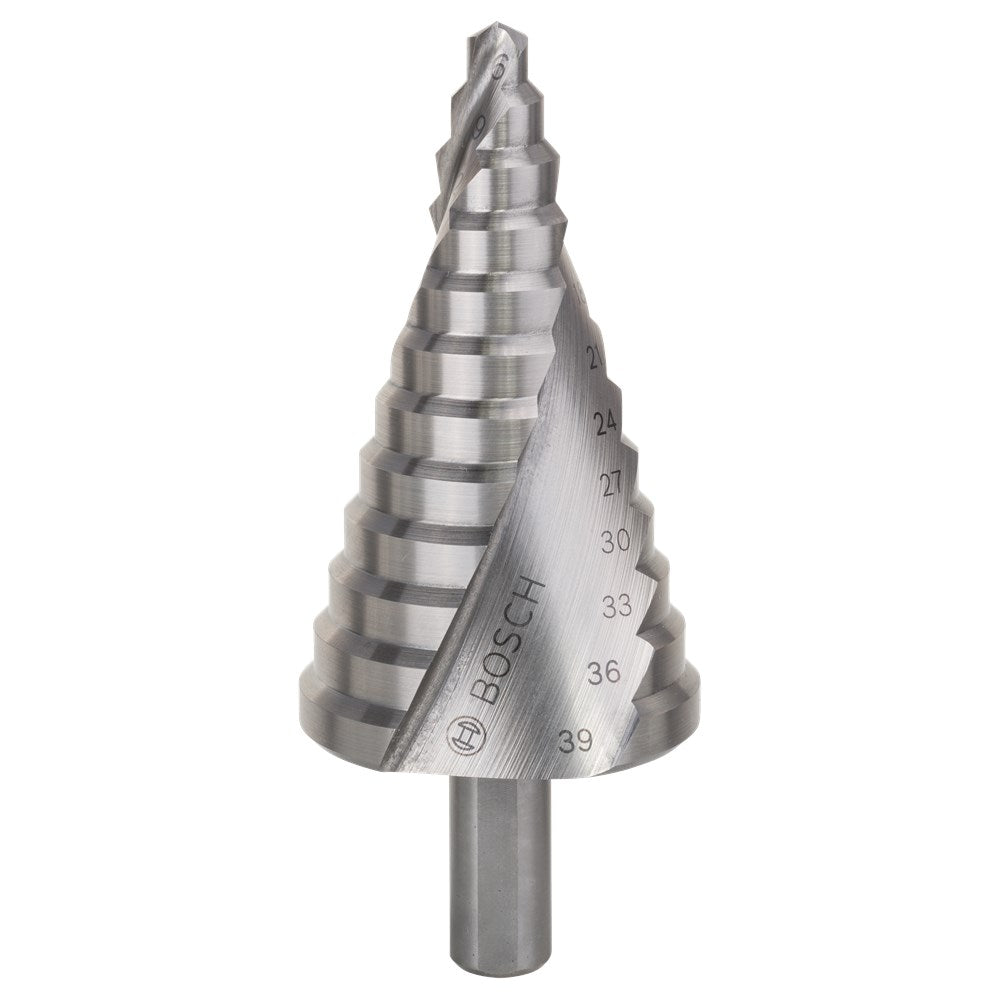 - HSS trappenboor kan met één boor gladde boringen van diverse diameters maken