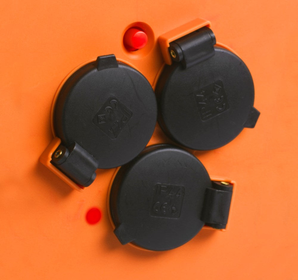 Set bevat: Robuuste kabelhaspel met neopreenkabel, geschikt voor zware toepassingen in bouw, industrie en agrarische sector.