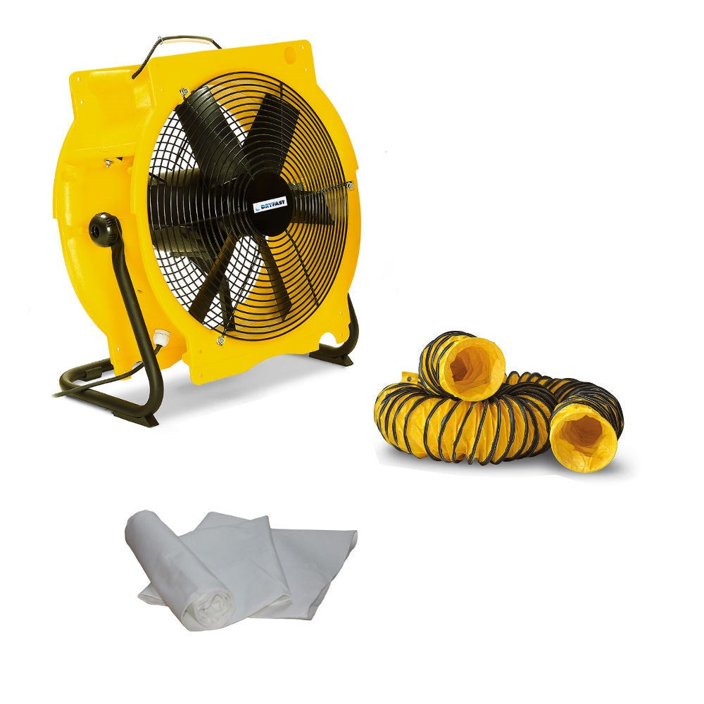 De Dryfast DFV4500LSAU stofafzuigset is een krachtige stofoplossing voor ruimtes tot 240 m³. Inclusief 3-traps ventilator, 10 m aanzuigslang en stofzak. Ideaal voor bouwplaatsen en renovaties.