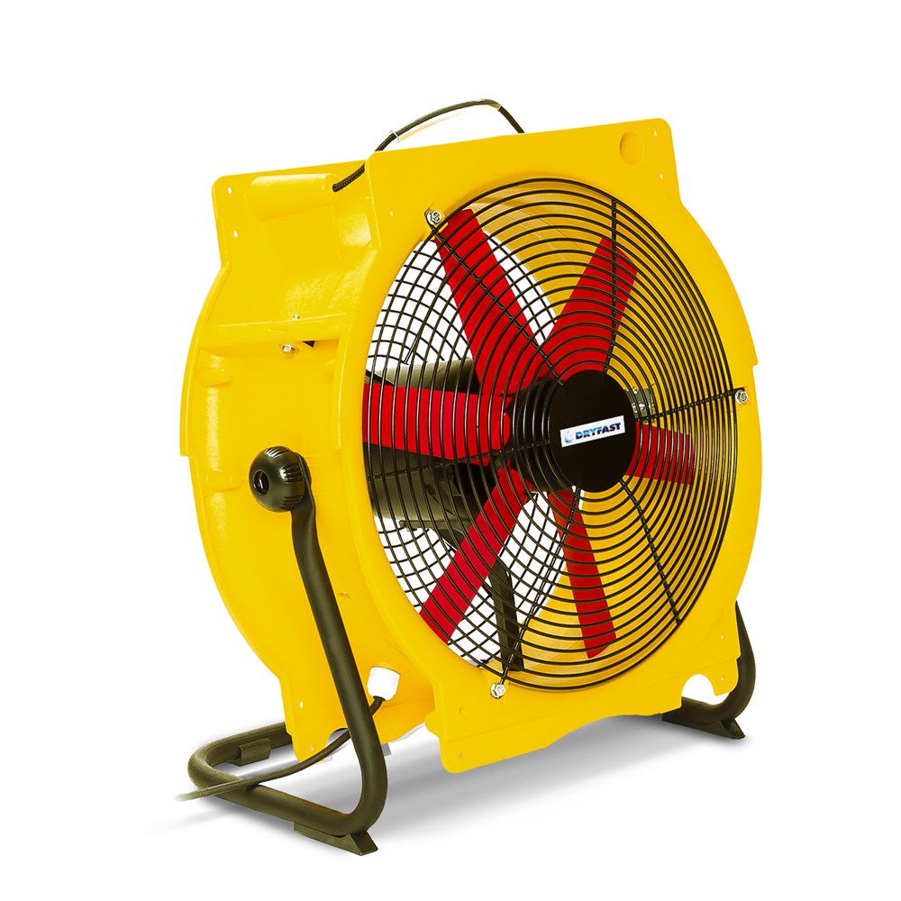 Krachtige Dryfast DFV4500HP (voorheen TTV4500HP) axiaal ventilator met 4.500 m³/uur luchtopbrengst en 250 Pa luchtdruk, ideaal voor stofafzuiging in bouwprojecten.