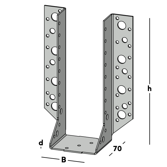 Set bevat: 1x zwaar verzinkte GB raveeldrager 500/75×212 mm voor het dragen en verbinden van balken in constructieve houtverbindingen.