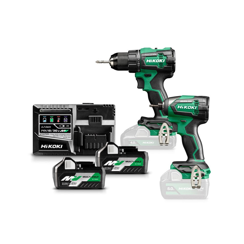 HiKOKI KC18DEWAZ 18V Accu combipack met Boor-schroefmachine DS18DE, Slagschroevendraaier WH18DE, 2x 5,0Ah MultiVolt accu's, snellader UC18YSL3 en HSC III koffer.