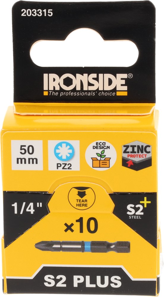 Set bevat: 10x Ironside PZ bits, vervaardigd uit S2+ gereedschapstaal met kleurcodering voor snelle herkenning en een lange levensduur.
