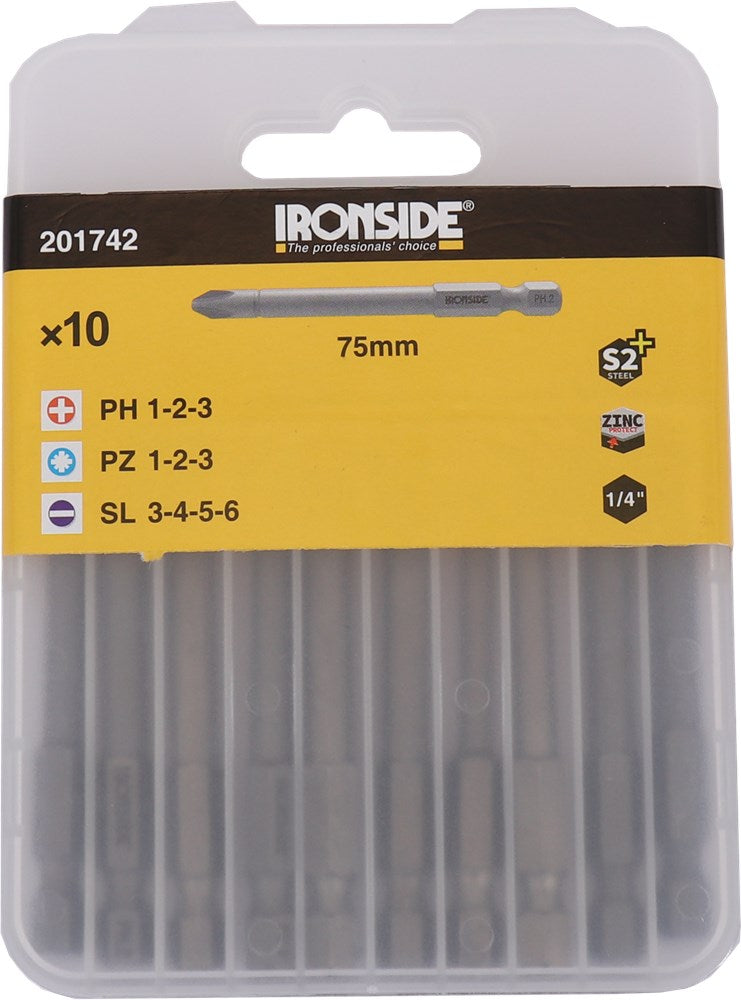 Ironside BITS PH-PZ-SL Verlengd 50mm Set 10 ST. Philips, Pozidriv en Sleuf – 1883035