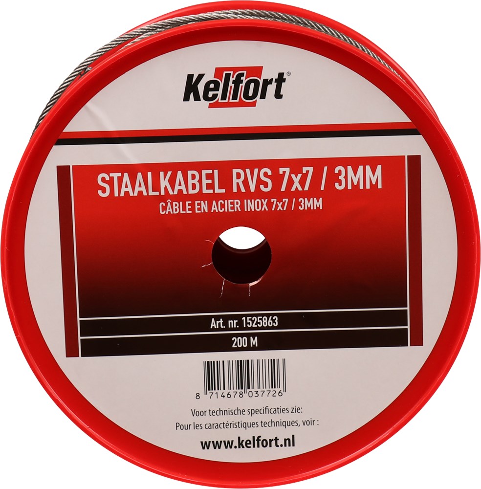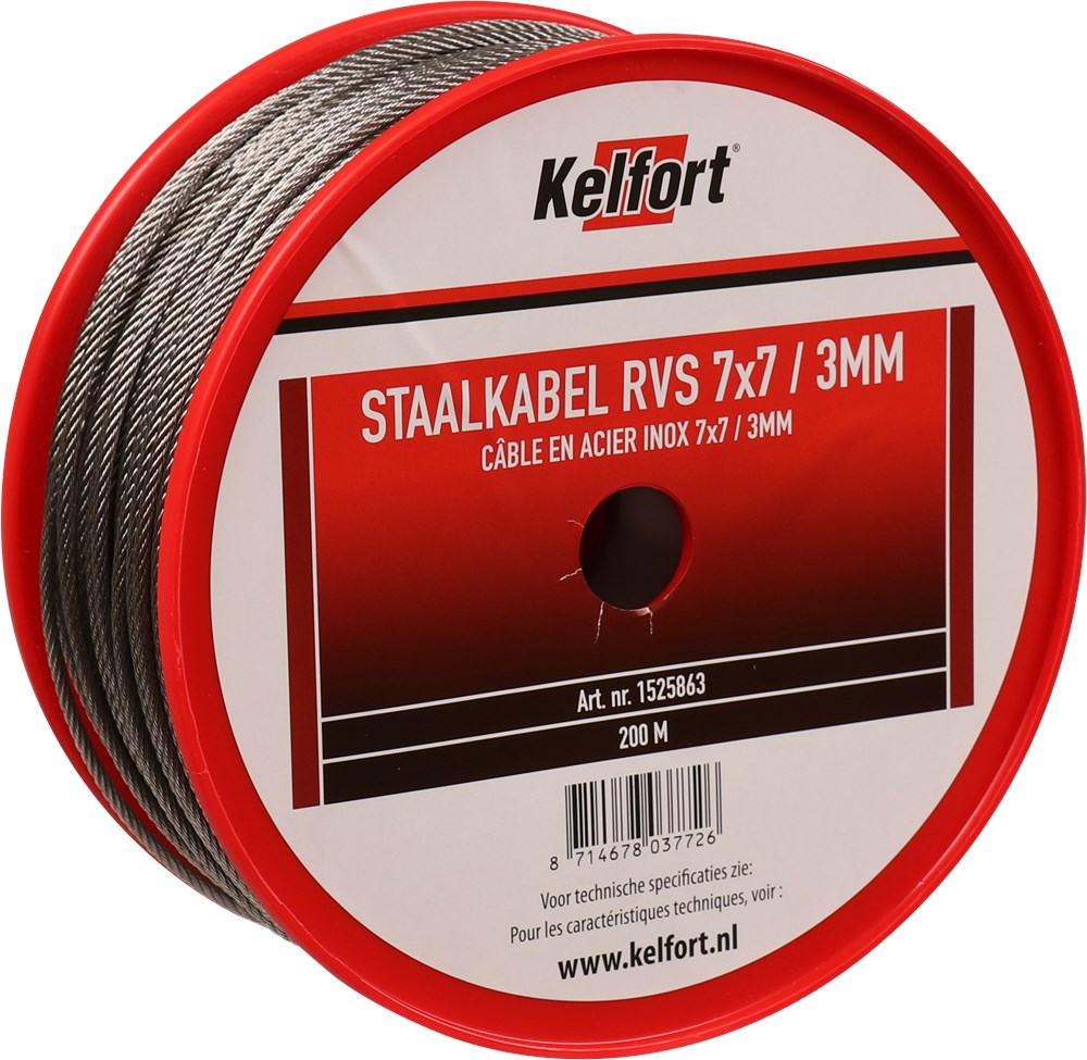 Kelfort STAALKABEL 3 MM 6X7 "RVS" 200M