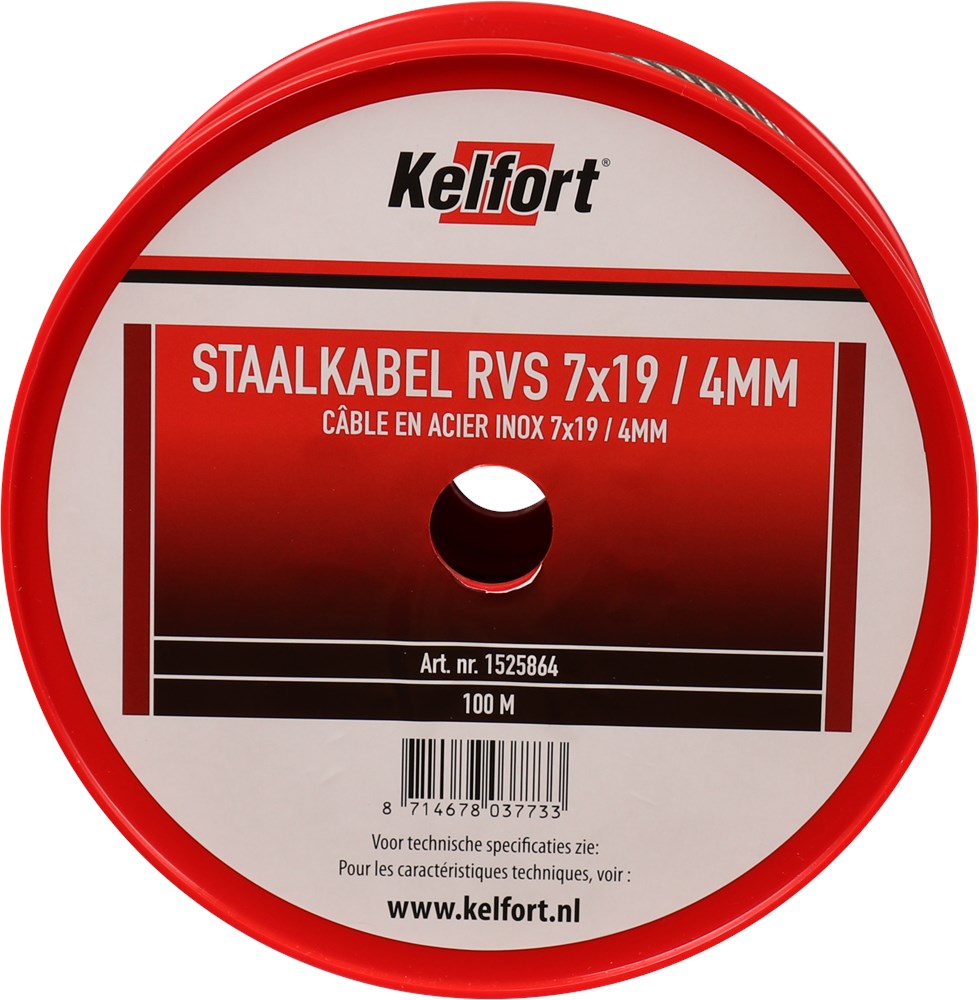 Kelfort STAALKABEL 4 MM 6X7 "RVS" 100M