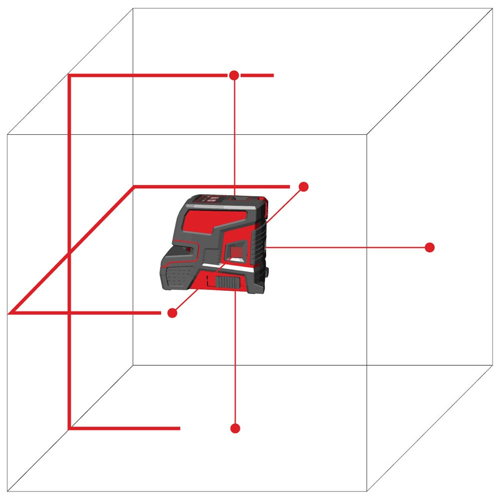De LEVELFIX CPL206R is een compacte lijn-puntlaser en projecteert een rode 190° horizontale en verticale lijn en 5 punten onder 90°