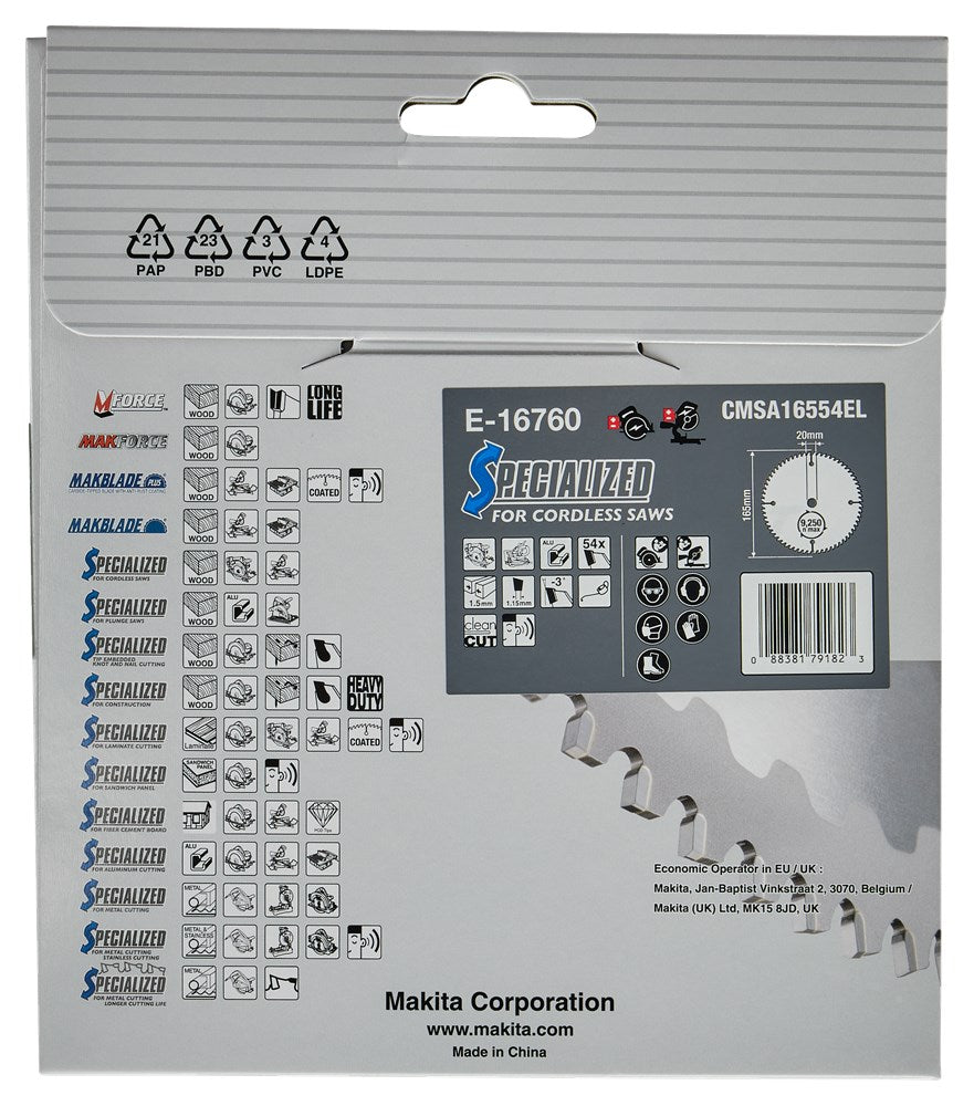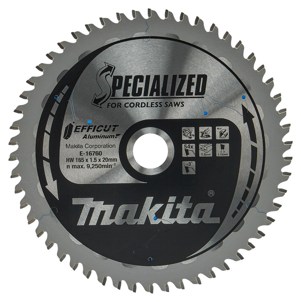 Makita Afkort- en Cirkelzaagblad Aluminium HM Zaagblad 165X20mm 54T -3G Alu – E-16760