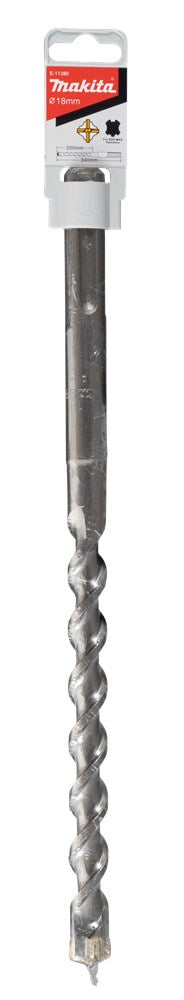 Makita kent een uitgebreide range aan betonboren. Voor elke klus en portemonnee is een betonboor beschikbaar: SP4S: Stofvrij Premium 4-snijder: Hoogste kwaliteit 4-snijder voor stofvrij werken. TNO-certificering met 8-uurs label in combinatie met een B-label stofzuiger. Voor droog metselwerk, beton, gewapend beton en (natuur)steen. P4S: Premium 4-snijder: Hoogste kwaliteit 4-snijder met lange levensduur. Door zijn dynamische boorpunt met unieke snijgeometrie en geoptimaliseerde spiraalvorm mag deze boor zich onder de beste in zijn soort scharen. Geschikt voor (gewapend) beton en (natuur)steen. B4S: Basis 4-snijder is een uitstekende boor die uitblinkt in zijn prijs-kwaliteitsverhouding. P2S: Premium 2-snijder: Hoge kwaliteit 2-snijder met lange levensduur. De dynamisch gevormde boorpunt garandeert een hoge boorsnelheid, de variabele boorspiraal zorgt voor een optimale afvoer van het boorgruis. B2S: Basis 2-snijder is een uitstekende boor die uitblinkt in zijn prijs-kwaliteitsverhouding. Makita SDS-MAX 4-snijder betonboor, afmeting 18x340mm.