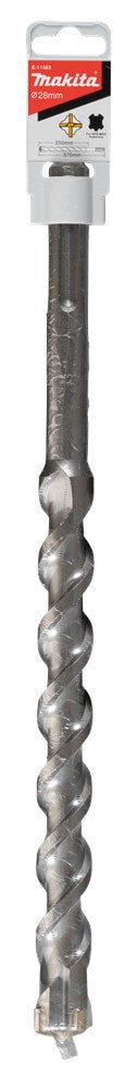Makita kent een uitgebreide range aan betonboren. Voor elke klus en portemonnee is een betonboor beschikbaar: SP4S: Stofvrij Premium 4-snijder: Hoogste kwaliteit 4-snijder voor stofvrij werken. TNO-certificering met 8-uurs label in combinatie met een B-label stofzuiger. Voor droog metselwerk, beton, gewapend beton en (natuur)steen. P4S: Premium 4-snijder: Hoogste kwaliteit 4-snijder met lange levensduur. Door zijn dynamische boorpunt met unieke snijgeometrie en geoptimaliseerde spiraalvorm mag deze boor zich onder de beste in zijn soort scharen. Geschikt voor (gewapend) beton en (natuur)steen. B4S: Basis 4-snijder is een uitstekende boor die uitblinkt in zijn prijs-kwaliteitsverhouding. P2S: Premium 2-snijder: Hoge kwaliteit 2-snijder met lange levensduur. De dynamisch gevormde boorpunt garandeert een hoge boorsnelheid, de variabele boorspiraal zorgt voor een optimale afvoer van het boorgruis. B2S: Basis 2-snijder is een uitstekende boor die uitblinkt in zijn prijs-kwaliteitsverhouding. Makita SDS-MAX 4-snijder betonboor, afmeting 28x370mm.