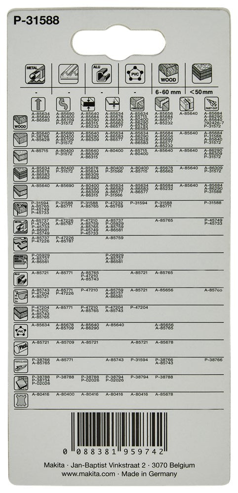 Passend op Makita Model: 4326, 4327, 4329K, 4329X, 4350CT, 4350FCT, 4350FCTJ, 4350FCTK, 4350T, 4351CT, 4351FCT, 4351FCTJ, 4351FCTK, 4351T, BJV140RFJ, BJV140RFX, BJV140ZJ, BJV140ZX, BJV180RFJ, BJV180RFX, BJV180ZJ, BJV180ZX, DJV140RFJ, DJV140RMJ, DJV140Z, DJV140ZJ, DJV141RFJ, DJV141RMJ, DJV141RTJ, DJV141ZJ, DJV142RFJ, DJV142RMJ, DJV142RTJ, DJV142ZJ, DJV180RFJ, DJV180RMJ, DJV180RTJ, DJV180Z, DJV180ZJ, DJV181RFJ, DJV181RMJ, DJV181RTJ, DJV181Z, DJV181ZJ, DJV182RFJ, DJV182RMJ, DJV182RTJ, DJV182Z, DJV182ZJ, DJV184RAJ, DJV184RTJ, DJV184Z, JR1000FTK, JR102DWE , JR105DSAE , JV001GD201, JV001GZ, JV0600J, JV0600K, JV0600X1, JV100DZ, JV101DSAE, JV101DSAJ, JV101DSME, JV101DZJ, JV102DSAJ, JV102DSMJ, JV102DZJ, JV103DSAJ, JV103DSMJ, JV103DZJ, JV143DWE, JV143DZ, JV183DWE, JV183DZ, M4301