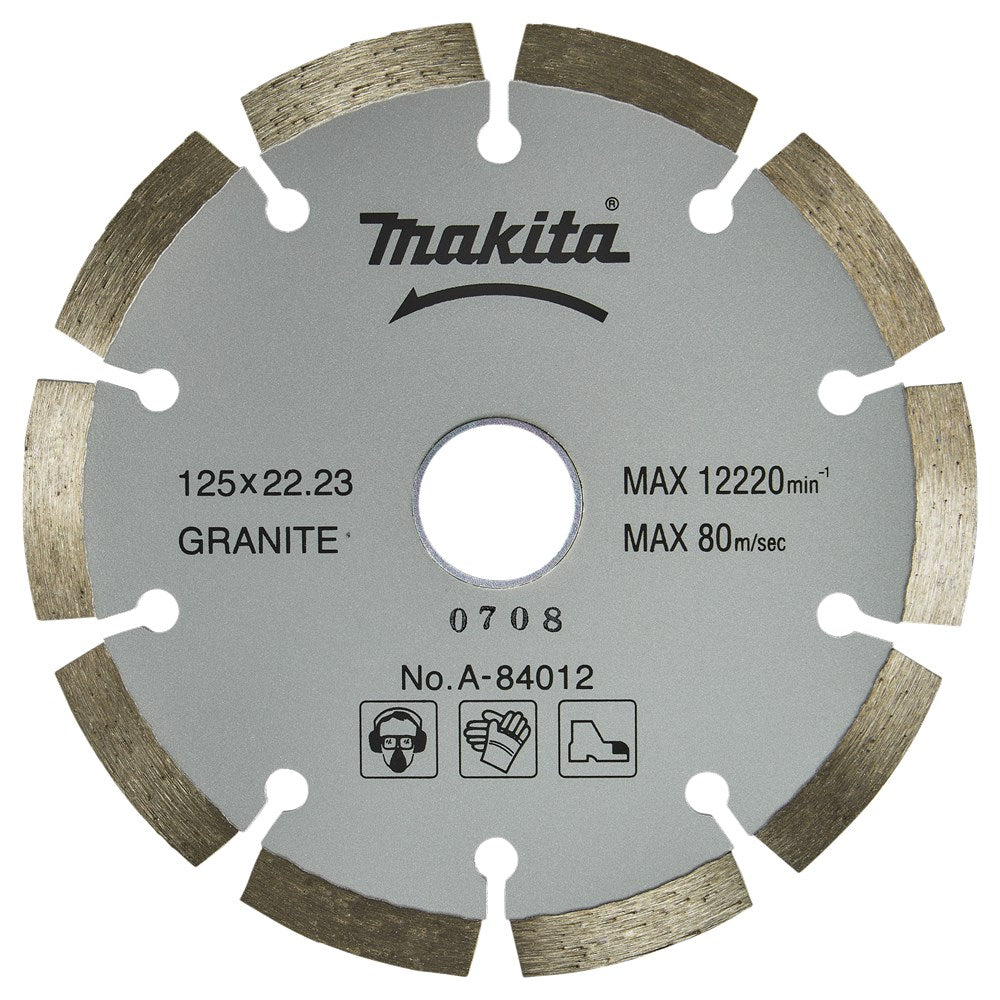Makita diamantzagen voor universeel gebruik zonder waterkoeling. Lasergelaste 7mm hoge segmenten met 100% garantie tegen lasbreuk. Deze professionele geluidsarme diamantzagen zijn geschikt voor afwisselend zagen van harde tot middelharde materialen. Gebruik een meer specifiek zaagblad wanneer veelal in hetzelfde materiaal zoals beton of baksteen gezaagd wordt. LET OP: DIAMANTSCHIJVEN 300mm EN 350mm ZIJN ENKEL GESCHIKT VOOR MOTORDOORSLIJPERS. Diamantschijf 125x22,23x2,0mm. Inclusief reduceerring van 22,23mm naar 20mm.
