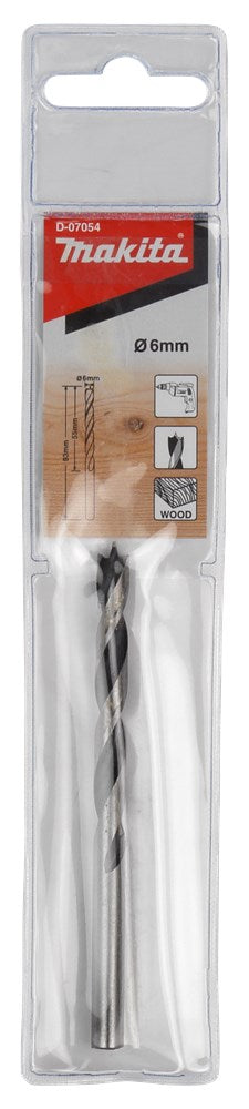 Makita houtboren met boorpunt, zijsnijders en geslepen spiraal. Boorkleur: zwart. Uitermate geschikt voor het boren in zacht- en hardhout, spaanplaat, gefineerde meubelpanelen, triplex en multiplex. Makita houtboor 6x95mm, met boorpunt, zijsnijders en geslepen spiraal. Uitermate geschikt voor het boren in zacht- en hardhout, spaanplaat, triplex en multiplex.