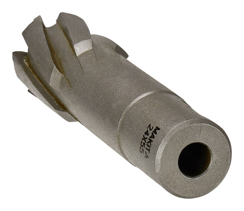 Kernboren gemaakt van High Speed Steel (HSS) of hardmetaal (HM) voor het boren in metaal. De kernboren hebben een Weldon aansluiting en zijn bedoeld voor gebruik in een kernboormachine (HB350 of HB500). Kernboren met een letter L (large) in het artikelnummer, bijvoorbeeld HB14L, geeft aan dat het om de lange variant, 50mm, kernboor gaat. Kernboren met een artikelnummer dat eindigt op een S (small), zijn 30 mm lang. Kijk altijd in de gebruiksaanwijzing voor geadviseerde toerentallen. HSS kernboor voorzien van hardmetalen wolfraamcarbide (TCT) vertanding. De hardmetalen vertanding zorgt voor een langere levensduur dan reguliere HSS kernboren en maakt de boren geschikt voor boren in staal, RVS, non-ferro, kunststof en gietijzer. De kernboren hebben een Weldon aansluiting en zijn geschikt voor gebruik in een magneetkernboormachine. Wij raden voor hard gelegeerd staal en RVS het gebruik van de optionele centreerpen sterk aan (zie tabblad accessoires/past op). De boren zijn voorbehandeld met olie om roestvorming tijdens transport en opslag te voorkomen. Kernboren dienen altijd gebruikt te worden in combinatie met snijolie. Op de magneetboormachine zit een snijolie toevoer. Dit verlengt de levensduur van de kernboren en van de (magneet) boormachine.