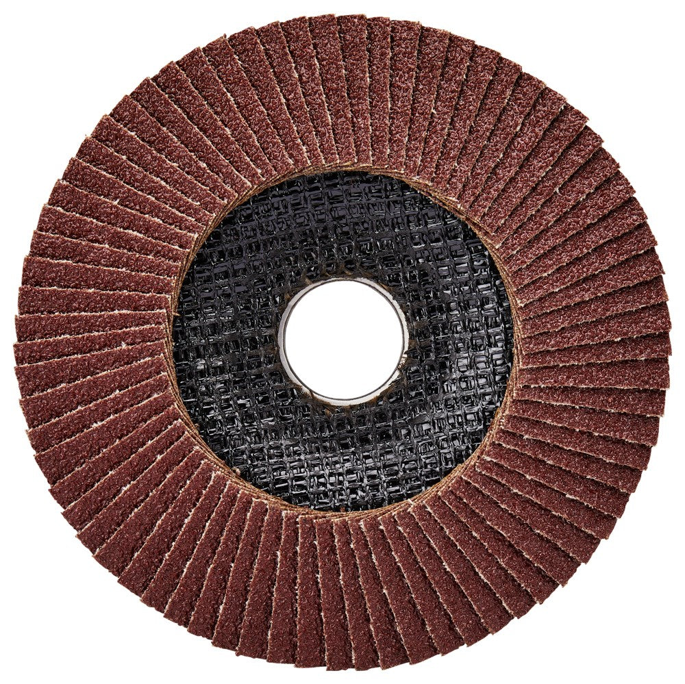 Lamellenschuurschijven zijn voorzien van lamellen bestaande uit een rug van vezelstof en korrels. Deze zijn geplaatst op een schijf met een rug van glasvezels. Doordat de schijf opgebouwd is uit lamellen is deze veerkrachtiger dan een schuurschijf en minder agressief voor het te bewerken materiaal. Bijzonder geschikt voor het schuren van lasnaden. Soorten korrel: Aluminiumoxide [A]: Zeer geschikt voor staal. Geschikt voor aluminium, non-ferro metalen en kunststoffen. Zirkoniumoxide [Z]: Zeer geschikt voor RVS. Geschikt voor staal, aluminium en non-ferro metalen. Keramisch aluminiumoxide [Ce]: Zeer geschikt voor RVS. Geschikt voor staal, aluminium en non-ferro metalen. Siliciumcarbide [S]: Zeer geschikt voor mortel en steen. Vom van de schijf: Vlakke schijven gebruik je voor het vlakschuren van oppervlakken. Plaatst deze onder een hoek van 0-15° op het materiaal voor een optimaal gebruik. Schuine schijven gebruik je voor het schuren van lasnaden, slijpen van vellingkanten en ontbramen. Plaats deze onder een hoek van 10-25° op het materiaal voor een optimaal gebruik. Korrels: 36/40: Lasnaadbewerking en vellingkanten. 60: Lasnaadbewerking, vellingkanten, ontbramen en vlakschuren. 80: Ontbramen en vlakschuren. 120: Vlakschuren. Voordelige Makita aluminiumoxide lamellenschuurschijf schuin met glasvezel versterkte rug. Diameter 125mm met korrel 60. Zeer geschikt voor: metaal. Geschikt voor: kunststof, non-ferro metalen en hout. Verpakkingseenheid: 10 stuks. Tevens per stuk verkrijgbaar D-63482.