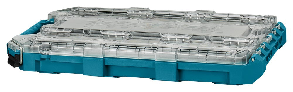 Set bevat: 1x Makita MAKTRAK Organizer Plat 8.14 L met transparant deksel en 11 uitneembare bakken.