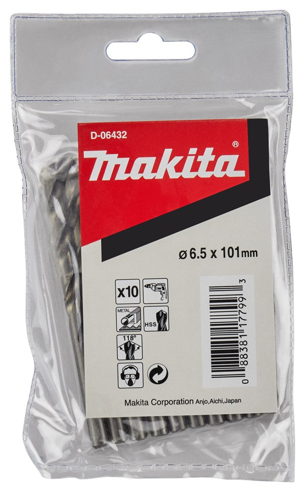 Makita Metaalboor 6.5X101mm 10 stuks HSS – D-06432