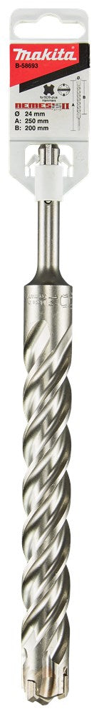 Makita kent een uitgebreide range aan betonboren. Voor elke klus en portemonnee is een betonboor beschikbaar: SP4S: Stofvrij Premium 4-snijder: Hoogste kwaliteit 4-snijder voor stofvrij werken. TNO-certificering met 8-uurs label in combinatie met een B-label stofzuiger. Voor droog metselwerk, beton, gewapend beton en (natuur)steen. P4S: Premium 4-snijder: Hoogste kwaliteit 4-snijder met lange levensduur. Door zijn dynamische boorpunt met unieke snijgeometrie en geoptimaliseerde spiraalvorm mag deze boor zich onder de beste in zijn soort scharen. Geschikt voor (gewapend) beton en (natuur)steen. B4S: Basis 4-snijder is een uitstekende boor die uitblinkt in zijn prijs-kwaliteitsverhouding. P2S: Premium 2-snijder: Hoge kwaliteit 2-snijder met lange levensduur. De dynamisch gevormde boorpunt garandeert een hoge boorsnelheid, de variabele boorspiraal zorgt voor een optimale afvoer van het boorgruis. B2S: Basis 2-snijder is een uitstekende boor die uitblinkt in zijn prijs-kwaliteitsverhouding. Betonboor 24x250mm met SDS-PLUS aansluiting. Viersnijder uit het NemesisII-assortiment, de hoogste kwaliteit Makita betonboren.