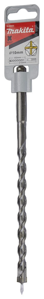 Makita kent een uitgebreide range aan betonboren. Voor elke klus en portemonnee is een betonboor beschikbaar: SP4S: Stofvrij Premium 4-snijder: Hoogste kwaliteit 4-snijder voor stofvrij werken. TNO-certificering met 8-uurs label in combinatie met een B-label stofzuiger. Voor droog metselwerk, beton, gewapend beton en (natuur)steen. P4S: Premium 4-snijder: Hoogste kwaliteit 4-snijder met lange levensduur. Door zijn dynamische boorpunt met unieke snijgeometrie en geoptimaliseerde spiraalvorm mag deze boor zich onder de beste in zijn soort scharen. Geschikt voor (gewapend) beton en (natuur)steen. B4S: Basis 4-snijder is een uitstekende boor die uitblinkt in zijn prijs-kwaliteitsverhouding. P2S: Premium 2-snijder: Hoge kwaliteit 2-snijder met lange levensduur. De dynamisch gevormde boorpunt garandeert een hoge boorsnelheid, de variabele boorspiraal zorgt voor een optimale afvoer van het boorgruis. B2S: Basis 2-snijder is een uitstekende boor die uitblinkt in zijn prijs-kwaliteitsverhouding. Makita SDS-PLUS 4-snijder betonboor, afmeting 10x210mm.
