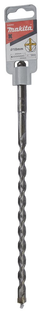 Makita kent een uitgebreide range aan betonboren. Voor elke klus en portemonnee is een betonboor beschikbaar: SP4S: Stofvrij Premium 4-snijder: Hoogste kwaliteit 4-snijder voor stofvrij werken. TNO-certificering met 8-uurs label in combinatie met een B-label stofzuiger. Voor droog metselwerk, beton, gewapend beton en (natuur)steen. P4S: Premium 4-snijder: Hoogste kwaliteit 4-snijder met lange levensduur. Door zijn dynamische boorpunt met unieke snijgeometrie en geoptimaliseerde spiraalvorm mag deze boor zich onder de beste in zijn soort scharen. Geschikt voor (gewapend) beton en (natuur)steen. B4S: Basis 4-snijder is een uitstekende boor die uitblinkt in zijn prijs-kwaliteitsverhouding. P2S: Premium 2-snijder: Hoge kwaliteit 2-snijder met lange levensduur. De dynamisch gevormde boorpunt garandeert een hoge boorsnelheid, de variabele boorspiraal zorgt voor een optimale afvoer van het boorgruis. B2S: Basis 2-snijder is een uitstekende boor die uitblinkt in zijn prijs-kwaliteitsverhouding. Makita SDS-PLUS 4-snijder betonboor, afmeting 10x260mm.