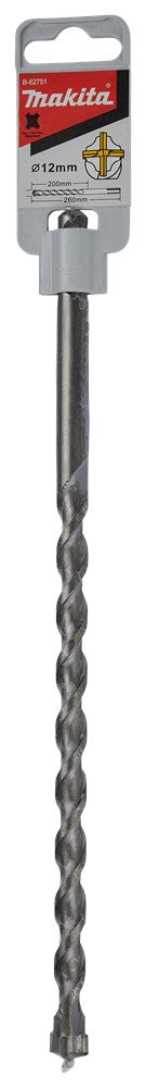 Makita kent een uitgebreide range aan betonboren. Voor elke klus en portemonnee is een betonboor beschikbaar: SP4S: Stofvrij Premium 4-snijder: Hoogste kwaliteit 4-snijder voor stofvrij werken. TNO-certificering met 8-uurs label in combinatie met een B-label stofzuiger. Voor droog metselwerk, beton, gewapend beton en (natuur)steen. P4S: Premium 4-snijder: Hoogste kwaliteit 4-snijder met lange levensduur. Door zijn dynamische boorpunt met unieke snijgeometrie en geoptimaliseerde spiraalvorm mag deze boor zich onder de beste in zijn soort scharen. Geschikt voor (gewapend) beton en (natuur)steen. B4S: Basis 4-snijder is een uitstekende boor die uitblinkt in zijn prijs-kwaliteitsverhouding. P2S: Premium 2-snijder: Hoge kwaliteit 2-snijder met lange levensduur. De dynamisch gevormde boorpunt garandeert een hoge boorsnelheid, de variabele boorspiraal zorgt voor een optimale afvoer van het boorgruis. B2S: Basis 2-snijder is een uitstekende boor die uitblinkt in zijn prijs-kwaliteitsverhouding. Makita SDS-PLUS 4-snijder betonboor, afmeting 12x260mm.