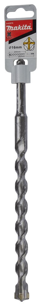 Makita kent een uitgebreide range aan betonboren. Voor elke klus en portemonnee is een betonboor beschikbaar: SP4S: Stofvrij Premium 4-snijder: Hoogste kwaliteit 4-snijder voor stofvrij werken. TNO-certificering met 8-uurs label in combinatie met een B-label stofzuiger. Voor droog metselwerk, beton, gewapend beton en (natuur)steen. P4S: Premium 4-snijder: Hoogste kwaliteit 4-snijder met lange levensduur. Door zijn dynamische boorpunt met unieke snijgeometrie en geoptimaliseerde spiraalvorm mag deze boor zich onder de beste in zijn soort scharen. Geschikt voor (gewapend) beton en (natuur)steen. B4S: Basis 4-snijder is een uitstekende boor die uitblinkt in zijn prijs-kwaliteitsverhouding. P2S: Premium 2-snijder: Hoge kwaliteit 2-snijder met lange levensduur. De dynamisch gevormde boorpunt garandeert een hoge boorsnelheid, de variabele boorspiraal zorgt voor een optimale afvoer van het boorgruis. B2S: Basis 2-snijder is een uitstekende boor die uitblinkt in zijn prijs-kwaliteitsverhouding. Makita SDS-PLUS 4-snijder betonboor, afmeting 16x260mm.