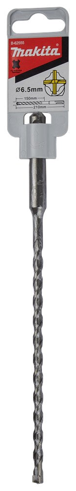 Makita kent een uitgebreide range aan betonboren. Voor elke klus en portemonnee is een betonboor beschikbaar: SP4S: Stofvrij Premium 4-snijder: Hoogste kwaliteit 4-snijder voor stofvrij werken. TNO-certificering met 8-uurs label in combinatie met een B-label stofzuiger. Voor droog metselwerk, beton, gewapend beton en (natuur)steen. P4S: Premium 4-snijder: Hoogste kwaliteit 4-snijder met lange levensduur. Door zijn dynamische boorpunt met unieke snijgeometrie en geoptimaliseerde spiraalvorm mag deze boor zich onder de beste in zijn soort scharen. Geschikt voor (gewapend) beton en (natuur)steen. B4S: Basis 4-snijder is een uitstekende boor die uitblinkt in zijn prijs-kwaliteitsverhouding. P2S: Premium 2-snijder: Hoge kwaliteit 2-snijder met lange levensduur. De dynamisch gevormde boorpunt garandeert een hoge boorsnelheid, de variabele boorspiraal zorgt voor een optimale afvoer van het boorgruis. B2S: Basis 2-snijder is een uitstekende boor die uitblinkt in zijn prijs-kwaliteitsverhouding. Makita SDS-PLUS 4-snijder betonboor, afmeting 6,5x210mm.