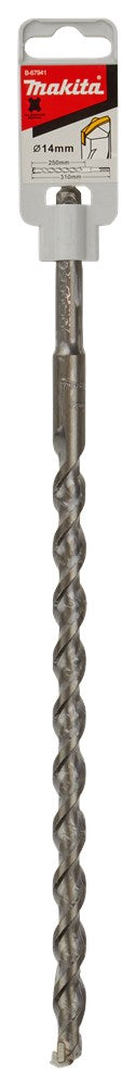 Makita kent een uitgebreide range aan betonboren. Voor elke klus en portemonnee is een betonboor beschikbaar: SP4S: Stofvrij Premium 4-snijder: Hoogste kwaliteit 4-snijder voor stofvrij werken. TNO-certificering met 8-uurs label in combinatie met een B-label stofzuiger. Voor droog metselwerk, beton, gewapend beton en (natuur)steen. P4S: Premium 4-snijder: Hoogste kwaliteit 4-snijder met lange levensduur. Door zijn dynamische boorpunt met unieke snijgeometrie en geoptimaliseerde spiraalvorm mag deze boor zich onder de beste in zijn soort scharen. Geschikt voor (gewapend) beton en (natuur)steen. B4S: Basis 4-snijder is een uitstekende boor die uitblinkt in zijn prijs-kwaliteitsverhouding. P2S: Premium 2-snijder: Hoge kwaliteit 2-snijder met lange levensduur. De dynamisch gevormde boorpunt garandeert een hoge boorsnelheid, de variabele boorspiraal zorgt voor een optimale afvoer van het boorgruis. B2S: Basis 2-snijder is een uitstekende boor die uitblinkt in zijn prijs-kwaliteitsverhouding. Makita betonboor met SDS-PLUS aansluiting en afmeting 14x310mm.