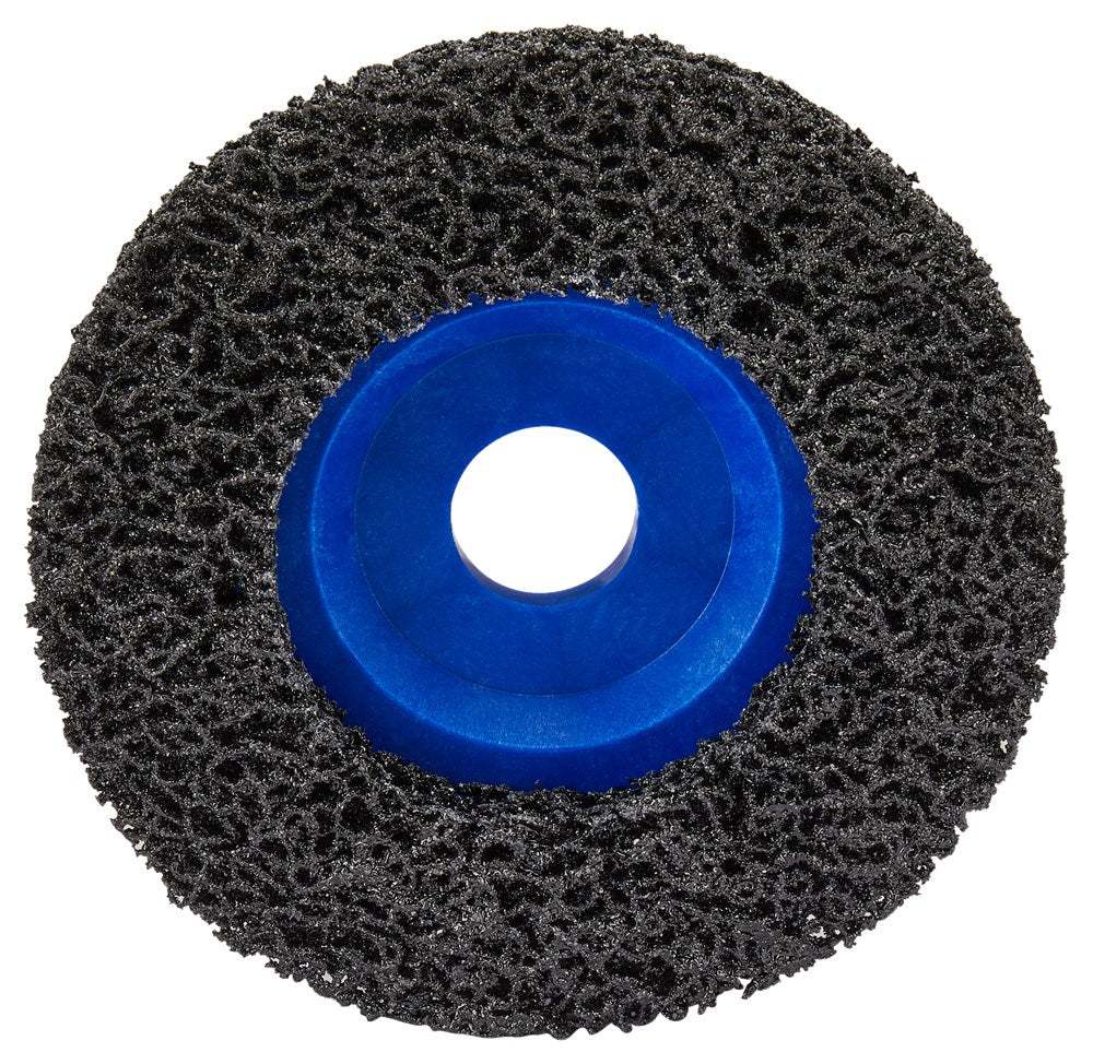 Zwarte Makita silicium-carbide reinigingsschijf met nylon versterkte rug. Diameter 125mm. Zeer geschikt voor het verwijderen van verfresten, epoxyresten, roestplekken en lasverkleuringen. De open structuur en het gebruikte zachte schijfmateriaal voorkomt beschadigingen aan de onderlaag van het werkstuk. Tevens verkrijgbaar in paars (langere levensduur, lagere bewerkingssnelheid) [B-36267] en met glasvezel versterkte rug in zwart [B-28983] en paars [B-29022].