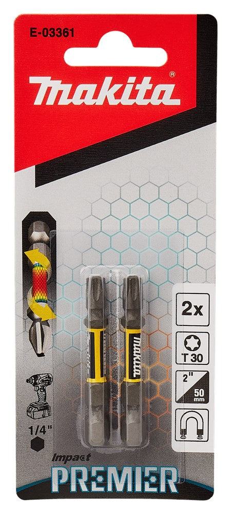 Makita schroefbits en slagschroefbits in verschillende lengtes en paskoppen. Voor elke klus is er een geschikte schroefbit beschikbaar. Kwalitatieve schroefbits in opbouw van Standaard, Impact Black, Impact Silver en Impact Gold naar Impact Premier.