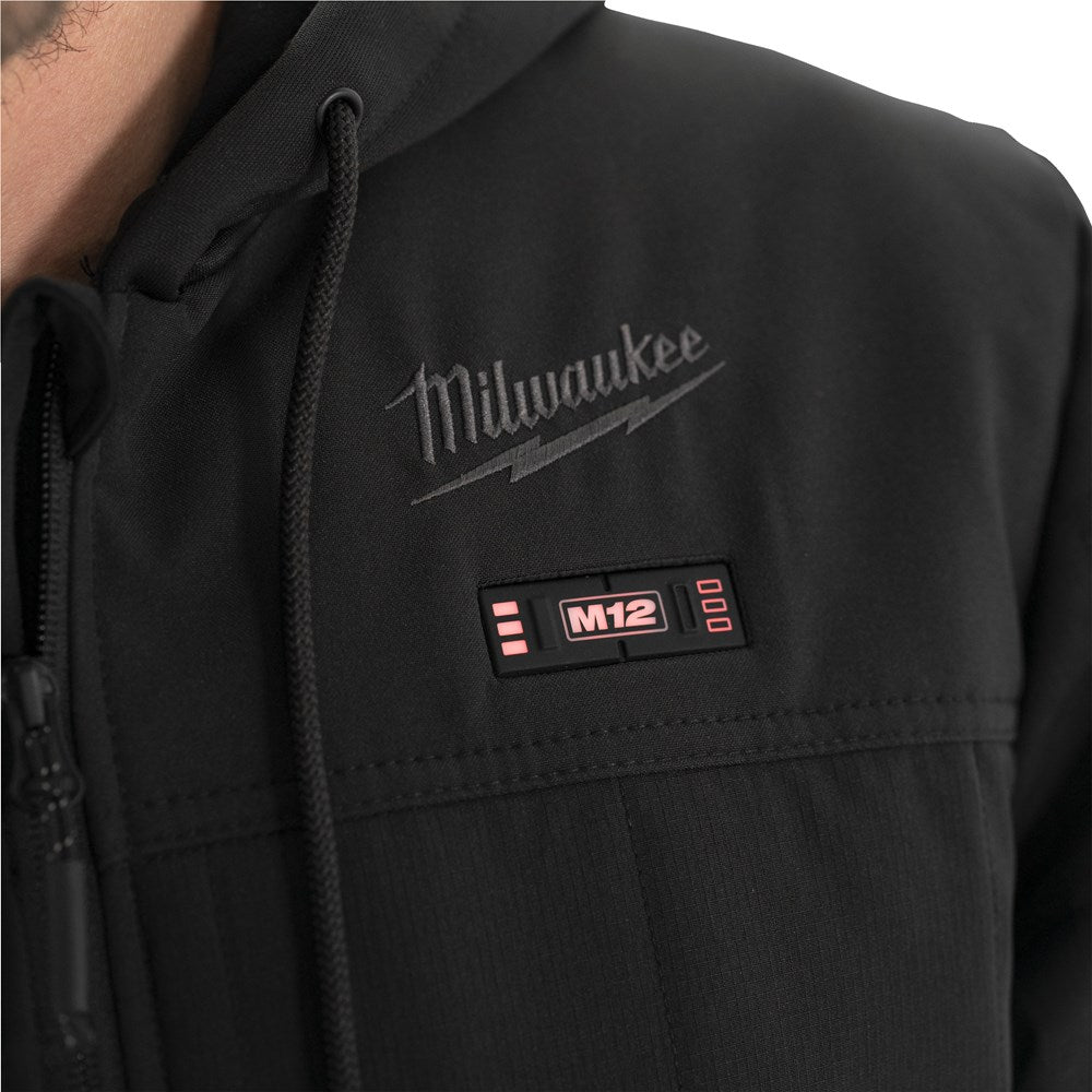 - M12™ Heated Jacket, aangedreven door een M12™ Accu met verwarmingselementen van koolstofvezel, creëert en verdeelt warmte op borst, rug en schouders.
