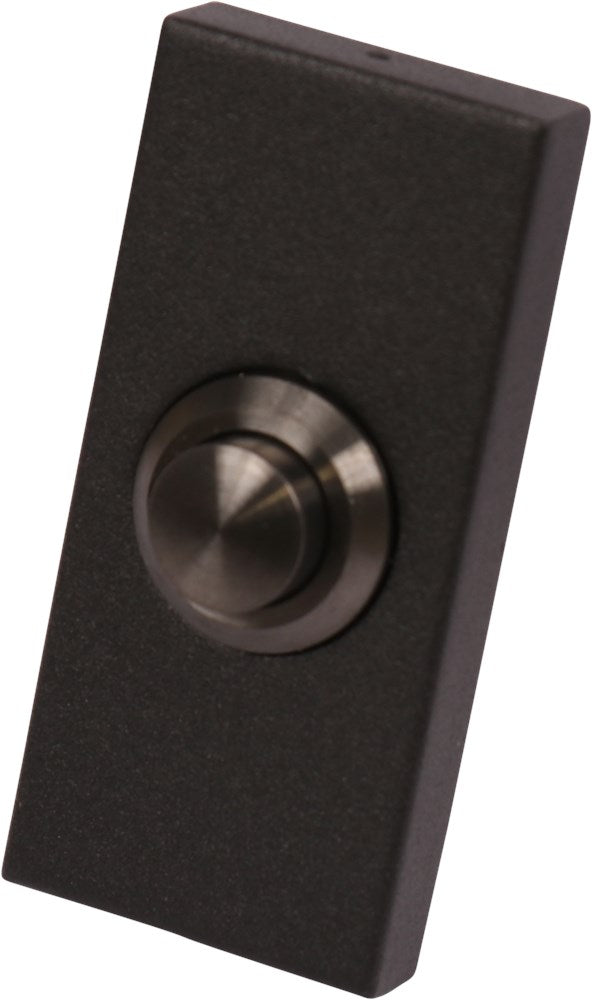 Oxloc Beldrukker Rechthoekig RVS Mat Zwart, afmetingen 64 x 30 x 8 mm, geschikt voor elektrische deurbellen.