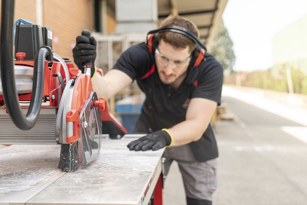 De professionele zaagmachines DCX-250 Xpert van RUBI zijn ontworpen voor het intensief zagen van porcellanato tegels (BIa) en alle andere soorten keramische tegels (BIIa/BIIb/BIII/AIb), ook kan er sporadisch natuursteen mee worden gezaagd.Het ontwerp van de DCX-250 Xpert zaagmachines omvat een in hoge mate versterkt aluminium chassis met een innovatief drievoudig balksysteem en stalen fronten om de stabiliteit en stijfheid van het hele chassis te verbeteren.De zaagkop van de DCX-250 Xpert wordt ondersteund door een versterkte geleiderail, eveneens van aluminium, voor een betere en preciezere afwerking van de zaagsnede. Dit systeem is ook voorzien van een stabiele invalmogelijkheid, waardoor de zaaghoogte kan worden aangepast aan de behoeften van de gebruiker.De DCX-250 Xpert zaagmachines van RUBI zijn uitgerust met het C3 Phyton-koelsysteem. Dit C3 Phyton systeem maakt het mogelijk de efficiëntie van de koeling te verhogen en vermindert de verspreiding en het verlies van water. Een efficiëntere koeling helpt de prestaties van het diamantblad te verhogen.Het koelsysteem van de DCX-250 Xpert wordt aangevuld met een dubbele stalen waterbak/afvoer voor een efficiëntere terugwinning van het gebruikte water, dat naar de externe 30-liter watertank wordt geleid. Deze externe watertank maakt het reinigen en vullen sneller en gemakkelijker.De modellen van de serie DCX-250 Xpert zijn voorzien van versterkte handgrepen en grote wielen (off-road type), die het vervoer en de hantering van de zaagmachines vergemakkelijken. De inklapbare en versterkte poten zijn voorzien van een snelvergrendelingssysteem en een veiligheidsinrichting die onbedoeld inklappen tijdens het werk voorkomt. Bovendien is de DCX voorzien van een stelschroef (onder 1 poot) waarmee een correcte nivellering van de zaagtafel kan worden gegarandeerd.RUBI denkt altijd aan de veiligheid van de vakman en rust de DCX-250 Xpert modellen uit met zijn ZERO DUST systeem, gepatenteerd en gecertificeerd door TNO*, dat dankzij de vermindering van de inhaleerbare stofdeeltjes die tijdens het zagen ontstaan, een veilige blootstelling aan silica van keramische materialen en natuursteen mogelijk maakt.* biedt "veilige blootstellings"-waarden aan respirabel kwartsstofdeeltjes binnen de "inhalatiezone van de gebruiker", waardoor RUBI zaagmachines tot 3 uur per dag en aaneengesloten keramische tegels kunnen zagen en 1 uur natuursteen in een gesloten en niet-geventileerde ruimte van 15 m3.