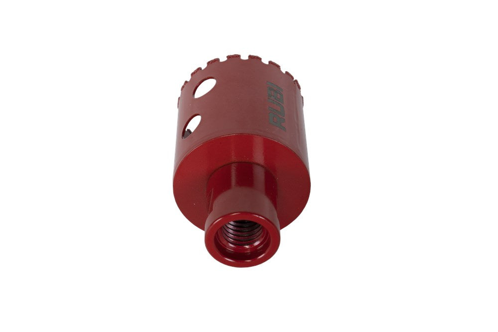 De DRYGRES PREMIUM reeks diamantboren is perfect voor het boren van alle soorten tegels, vooral porcellanato, en andere steenachtige soorten zoals marmer en graniet.RUBI heeft de VACUUM BRAZED-technologie van vacuüm solderen gebruikt in de DRYGRES PREMIUM reeksboren, die hogere temperaturen door wrijving te weerstaan. Hierdoor ontstaat een hogere standtijd van de diamantboren.DRYGRES PREMIUM diamantboren, met diameters Ø 6 tot 12 mm, zijn perfect voor het bevestigen van badkameraccessoires of elk type decoratie-accessoire op betegelde oppervlakken. De overige diameters van het DRYGRES PREMIUM diamantborenassortiment, van Ø 20 tot 85 mm, zijn vooral ontworpen om de tegelzetter de beste resultaten te bieden bij het boren van stopcontacten, buizen, afvoeren, verlichting, enz.DRYGRES PREMIUM diamantboren zijn droog geslepen en kunnen dankzij hun M14 schroefdraadaansluiting rechtstreeks op een haakse slijper of via een adapter (ref. 05976) op een boormachine – zonder klopfunctie – gebruikt worden.De gemiddelde levensduur van de DRYGRES PREMIUM diamantboren varieert naargelang de diameter: die van Ø 6 tot 12 mm hebben een gemiddelde levensduur van 60 gaten en voor de boren van Ø 20 tot 85 mm is dat 150 gaten.De gemiddelde levensduur van de boren hangt ALTIJD af van het soort materiaal, de dikte en de juiste koeling en gebruik.De boordiepte van de DRYGRES PREMIUM diamantboren bedraagt 30 mm voor boren van Ø 6 tot 35 mm en 38 mm voor boren van Ø 43 tot 85 mm.In de diameters Ø 6, 8, 10 en 12 mm bevatten de PREMIUM DRYGRES binnenin wax. Deze wax smelt tijdens het gebruik van de boor en vergemakkelijkt het afkoelen en evacueren van het boorgruis (Als de wax opraakt, kan de boor gewoon verder gebruikt worden. Slechts het totale verlies van de diamant geeft het einde van de levensduur van de boor aan).De DRYGRES PREMIUM diamantboren (diameters Ø 20 tot 85 mm) hebben een zijdelingse opening die de afkoeling van de boor verbetert en het ons gemakkelijker maakt om na elk boorgat de boorkern te verwijderen. Alvorens een nieuw gat te boren, moeten we er zeker van zijn dat de boor schoon is. Boren vanaf Ø 43 mm zijn gesegmenteerd om de stabiliteit tijdens het boren te verbeteren.De maximale gebruikssnelheid voor DRYGRES PREMIUM diamantboren is 14.000 rpm.Voor een betere afwerking en een langere levensduur van de boor is het belangrijk om het juiste toerental te respecteren en een licht pendelende beweging te maken tijdens het boren.