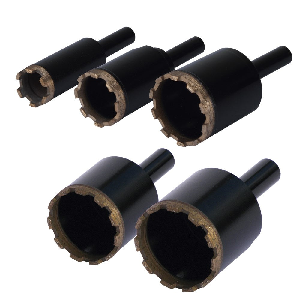 De FORAGRES serie van de diamantboren zijn aanbevolen voor het boren van alle soorten tegels en andere wand- of vloermaterialen zoals marmer en graniet.Verkrijgbaar in verschillende diameters van 20 tot en met 120 mm. Ze zijn perfect voor het maken van gaten in de tegel.De FORAGRES serie diamantboren zijn bedoeld om de beste resultaten te krijgen bij het uitvoeren van de noodzakelijke boren voor waterleidingen, waterafvoer, elektrische aansluitingen, enz.De diamantrand van FORAGRES boren is aan de metalen boor bevestigd door een verstevigde las.MINIGRES diamantboren moeten altijd worden gekoeld met water en kan alleen aangesloten worden op een boormachine.Het gebruik van de MULTIDRILL geleider (ref. 50944) wordt aanbevolen tot een diameter van 83 mm. Voor het boren van gaten van meer dan 84 mm in diameter, wordt de FORAGRES geleider aanbevolen (ref. 50900).De gemiddelde levensduur van de FORAGRES diamantboren is 60 gaten en is altijd afhankelijk van het soort materiaal, de dikte, de koeling en de toepassing.De boordiepte van de FORAGRES diamantboren is 30 mm (33 mm voor diameters van 55 en 75 mm).De MINIGRES diamantboren hebben geen opening voor het afvoeren van afval, zorg er altijd voor dat de boor schoon en vrij van restafval is.De maximumsnelheid voor het gebruik van FORAGRES diamantboren is 900 rpm, behalve bij diameters van 100 en 120 mm, waarvan de maximumsnelheid 450 rpm is.Voor een betere afwerking en langere levensduur van de boor, is het belangrijk om de juiste rotatiesnelheid aan te houden en matige druk uit te oefenen tijdens het boren.