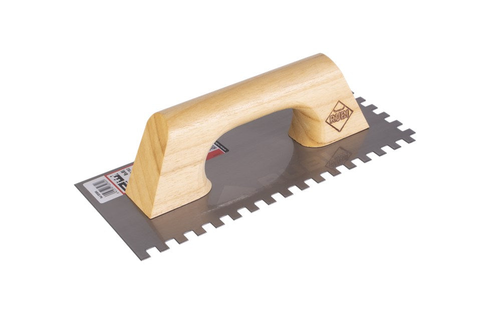 De spanen en gekerfde spanen met gesloten houten handgrepen hebben een speciale hoge slijtvaste stalen plaat en corrosiebescherming met kleurloze lak. (STAAL).Er zijn ook modellen met een speciale hoge slijtvaste roestvrij stalen plaat.Een van de kenmerken van alle RUBI troffels en inkeping troffels is de perfecte vlakheid van de plaat.De spanen en gekerfde spanen met houten handgrepen bieden professionele tegelzetters een traditionele handgreep met het zachte gevoel van natuurlijk hout, dankzij een volledige proces van frezen, schuren en lakken.Het gesloten handgreep zorgt voor een symmetrische gereedschap perfect voor gebruik door zowel rechtshandig en linkshandige mensen, terwijl we een gereedschap verstrekken dat gecentreerd is en gemakkelijker te controleren en te gebruiken.Het blad en steel zijn met elkaar verbonden door twee roestvrijstalen schroeven, voor een langere levensduur.Een ander aspect dat het RUBI assortiment spanen en lijmkammen onderscheid van de rest is het brede scala van modellen enafmetingen van de inkepingen.Bij de toepassing van lijmen voor de montage van keramische tegels, moet er altijd rekening gehouden worden met de open en hardingstijden van elke fabrikant.