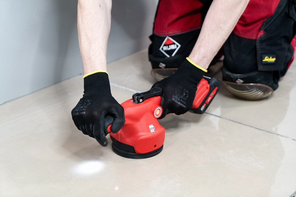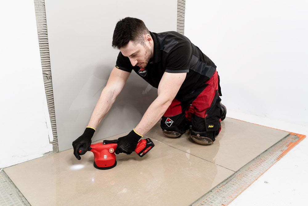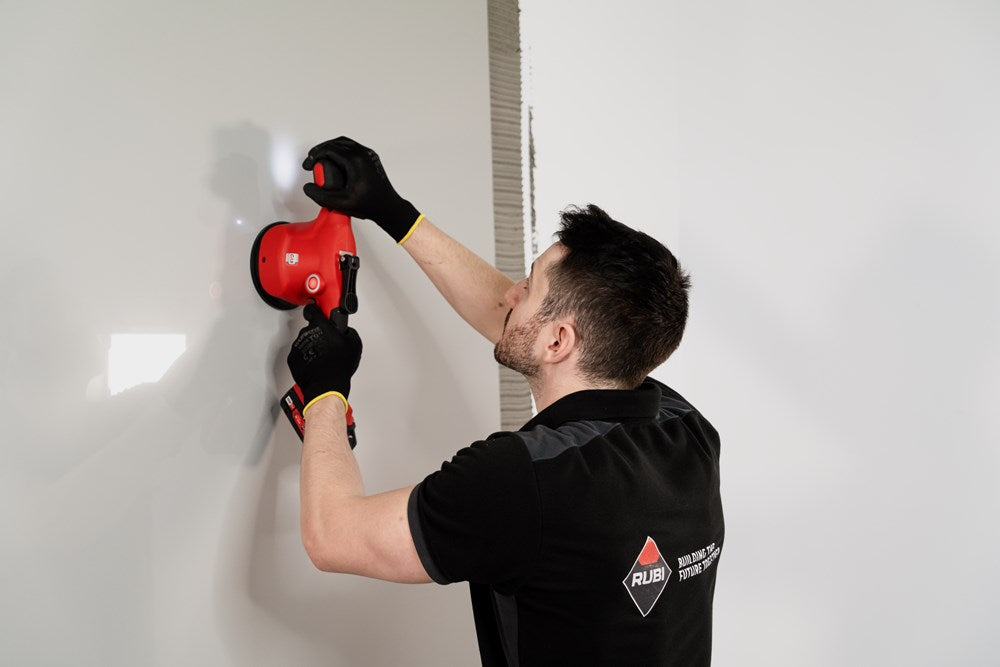 De QUAKE ENERGY CAS is een lichte en compacte tegelklopper, speciaal ontworpen om de lucht die onder de tegel gevangen zit te verwijderen. Op deze manier vergemakkelijkt het een ideale bevochtiging en zorgt voor een volle verlijming. Ideaal voor wanden en werk op hoogte dankzij het lage gewicht (1,8 kg inclusief accu)* en de vrijheid om draadloos te werken.De QUAKE ENERGY CAS tegelklopper van RUBI heeft een dubbelle handgreep met bi-materiaal, dit geeft de gebruiker meer ergonomie en comfort. De geometrie van de dubbele handgreep van de QUAKE ENERGY CAS zorgt voor een betere controle en stabiliteit van het gereedschap tijdens het trillen van de keramische tegel.De trilfrequentie van de QUAKE ENERGY CAS is van 0 tot 10.000 rpm., eenvoudig instelbaar door middel van de progressieve aan- en uitschakelaar (toerentalregeling). De AAN/UIT-schakelaar is een onafhankelijke drukknop om onbedoeld opstarten te voorkomen en de QUAKE heeft ook een LED-indicator aan de voorkant om het werkgebied te verlichten.De tegeldrager functie van de QUAKE ENERGY CAS wordt mechanisch geactiveerd door middel van de hendel aan de bovenkant van het apparaat. Het maximale draagvermogen van de tegeldrager functie is 50 kg en het gebruik als tegeldrager is uitsluitend bedoeld voor gladde oppervlakken.De combinatie van de tegeldrager functie en de tegelklopper functie maakt het mogelijk om op specifieke punten en in specifieke situaties te werken. Deze dubbele functie van de tegeldrager en tegelklopper vermindert de kans op het ontstaan van luchtbellen in de lijm onder de tegel wanneer deze wordt opgetild.De QUAKE ENERGY CAS wordt aangedreven door een 18V 2 Ah Li-HD accu* (compatibel met de 18V accu's van het METABO CAS platform). De ENERGY CAS accu heeft een LED display die het resterende oplaadniveau aangeeft aan de gebruiker. Als het display 4 groene LED's toont, is de accu meer dan 80% van zijn capaciteit. Als het display slechts 1 LED toont, geeft dit aan dat de capaciteit van de batterij onder de 20% is gedaald en moet worden opgeladen. De autonomie van de accu, op 100%, is ongeveer 60 minuten continu gebruik.Inclusief draagtas en SC-30 oplader, compatibel met de gehele serie ENERGY CAS accu's (12V - 18V).De QUAKE ENERGY CAS voegt zich bij de rest van de producten in het SLAB SYSTEM assortiment om de gespecialiseerde professional een compleet en globaal assortiment gereedschappen te bieden, volledig gespecialiseerd in het snijden, verwerken en installeren van keramiek.RUBI maakt deel uit van METABO's CAS platform. RUBI biedt een serie accu's die compatibel zijn met meer dan 300 producten die deel uitmaken van het CAS-platform (Cordless Alliance System).*CAS accu´s zijn niet compatibel met het METABO HPT systeem.