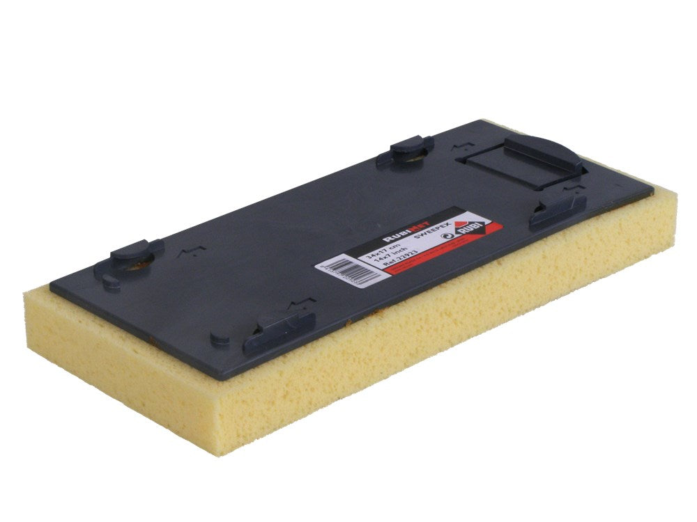 De RUBI sponsbord met verwisselbare handgreep serie bevat alles wat de tegelzetter nodig heeft in de schoonmaak fase van voegen en afwerking.De RUBI SUPERPRO sponsbord met verwisselbare handgreep serie bestaat uit een uitgebreid en divers aanbod van modellen, allemaal aangepast aan elke situatie:- De SUPERPRO sponsbord, gemaakt van flexibel polyester-polyurethaan, heeft een gemiddelde absorptie en is ideaal voor algemene reiniging van alle oppervlaktes en is te gebruiken met zuurhoudende artikelen.- De SWEEPEX® sponsbord is gemaakt van flexibel polyester-polyurethaan, heeft een hoge mate van absorptie en hoge slijtvastheid en is ideaal voor het reinigen van alle oppervlaktes. Het gebruik van zuurhoudende producten wordt niet aanbevolen.Naast het aanbieden van de desbetreffende onderdelen voor de SWEEPEX® en SUPERPRO spons biedt RUBI de gebruiker de volgende onderdelen:- Vervanging ABRASIVA sponsbord, gemaakt van hoge dichtheid polyethyleen, ideaal voor klussen die een hoger niveau van wrijving vereisen. Het gebruik van zuurhoudende producten wordt niet aanbevolen.- Vervanging Celulosa sponsbord (100% plantaardig) wordt speciaal aanbevolen voor het reinigen van klussen met een zuur of oplosmiddelen gebaseerde chemicaliën en in het bijzonder voor het reinigen van epoxy . Het heeft de hoogste absorptie en weerstand van de gehele reeks.Alle afmetingen zijn 30 x 13.5 cm. Bijbehorend ergonomisch handgreep is ref 22912.SWEEPEX® is een handelsmerk door de eigenaren geregistreerd.