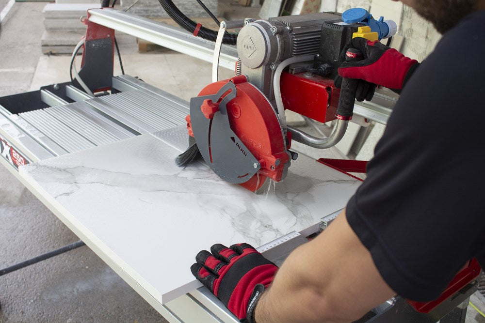 Het SPT PREMIUM assortiment diamantzaagbladen is speciaal ontworpen voor het zagen van porcellanato tegels met een dikte van meer dan 20 mm (dunnere tegels gaan natuurlijk altijd).Het lasergelaste zaagblad is samengesteld met langwerpige segmenten gevolgd door vele smalle openingen, zodat het water voor de koeling gemakkelijker de diepte mee ingenomen kan worden. Deze segmenten zorgen zowel voor een zeer hoge zaagsnelheid alsook voor een hele nauwkeurig en mooi afgewerkte zaagsnede.Door de speciale binding en de juiste variaties diamant blijft dit blad extreem lang scherp. Hierdoor is dit blad dé oplossing voor het nat zagen van dikkere tegels tot 35 mm, afhankelijk van de diameter van het blad en het vermogen van de motor.Alle bladen van de RUBI SPT PREMIUM serie zijn geschikt voor gebruik op machines met een beveiligingssysteem volgens de normen voor het gebruik van gesegmenteerde bladen.Rekening houdend met de bijzonderheden van elk type zaagblad (doorlopend, turbo, enz.) en met de materialen waarvoor deze is ontworpen, biedt RUBI bladen in drie verschillende kwaliteiten: PRO, SUPERPRO en PREMIUM.