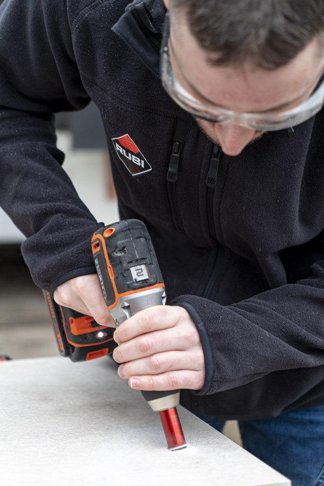 Binnen het assortiment diamantdroogboren heeft RUBI de DRYGRES 4DRILL boren. Het assortiment DRYGRES 4DRILL diamantboren wordt aanbevolen voor het boren van alle soorten keramische tegels, met name die van porseleinsteen en andere bekledingsmaterialen zoals marmer en graniet. In het assortiment van DRYGRES 4DRILL boren heeft RUBI gebruik gemaakt van de vacuümlastechniek VACUUM BRAZED, die de weerstand tegen temperatuur en wrijving verhoogt, om de diamantdeeltjes aan het booroppervlak te fixeren. DRYGRES 4DRILL boren zijn perfect voor het plaatsen van badkameraccessoires of elk type decoratief accessoire op keramische oppervlakken en/of natuursteen.DRYGRES 4DRILL diamantboren zijn ontworpen om uitsluitend te worden gebruikt met een elektrische boormachine met of zonder snoer, altijd ZONDER klopstand. Door hun zeshoekige verbinding kunnen ze zich snel aanpassen aan 13 mm boorkop.De boordiepte van DRYGRES 4DRILL boren is 36 mm voor de diameters 6, 8 en 10 mm. En 40 mm diep voor de boren met een diameter van 12, 14 en 20 mm. Alle DRYGRES 4DRILL boren bevatten wax. Deze wax smelt tijdens het gebruik van de boor en vergemakkelijkt de koeling en de afvoer van de boorresten (als de wax op is, kun je gewoon blijven boren. Alleen als al het diamant eraf is, dan kan de boor niet meer gebruikt worden). Versterkte basis met een aan te draaien schroef waardoor de wax op de tip van de boor blijft zitten.Omdat het een droogboor is, is het voor een juiste koeling van de boor noodzakelijk om tijdens het boren een lichte en constante pendelende beweging te maken en de resten van het materiaal tussentijds te verwijderen.DRYGRES 4DRILL boren, van RUBI, hebben een systeem dat het verlies van wax aan de achterkant van de boor blokkeert, waardoor de wax, altijd op de punt, geconcentreerd wordt en smering tijdens het boren verzekerd is.De aanbevolen minimumsnelheid voor DRYGRES 4DRILL diamantdroogboren is 1000 rpm. Voor een betere afwerking en een langere levensduur van de boor is het belangrijk om de juiste rotatiesnelheid te respecteren en een lichte pendelende beweging te maken tijdens het boren, en om ervoor te zorgen dat er na het boren geen resten van het geboorde materiaal in de boor achterblijven